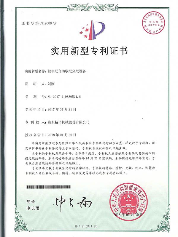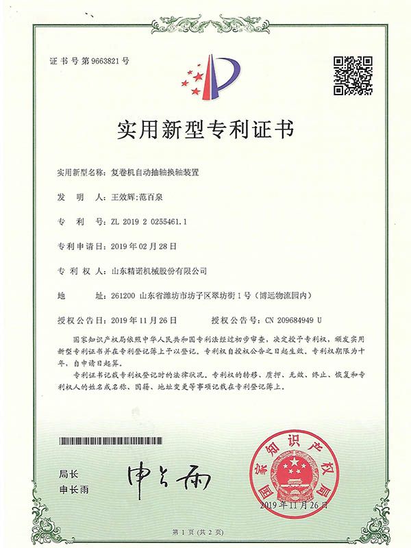 專利證(zhèng)書