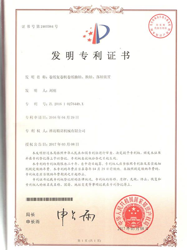 專利(lì)證書