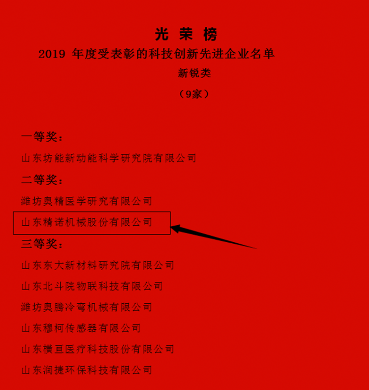 東精(jīng)諾(nuò)機(jī)械股份有限公(gōng)司獲得本年度科技創新先進(jìn)企業新(xīn)銳獎
